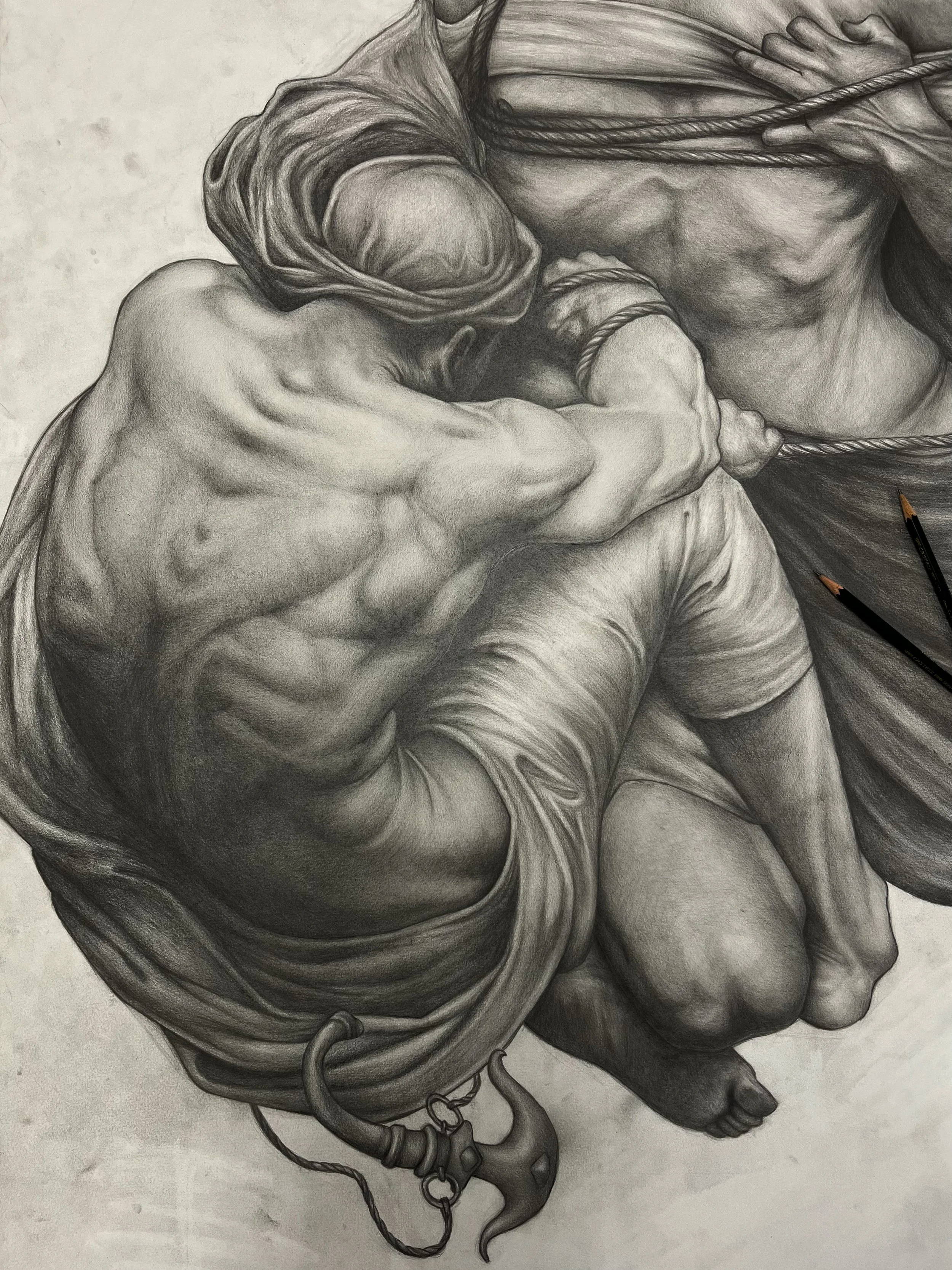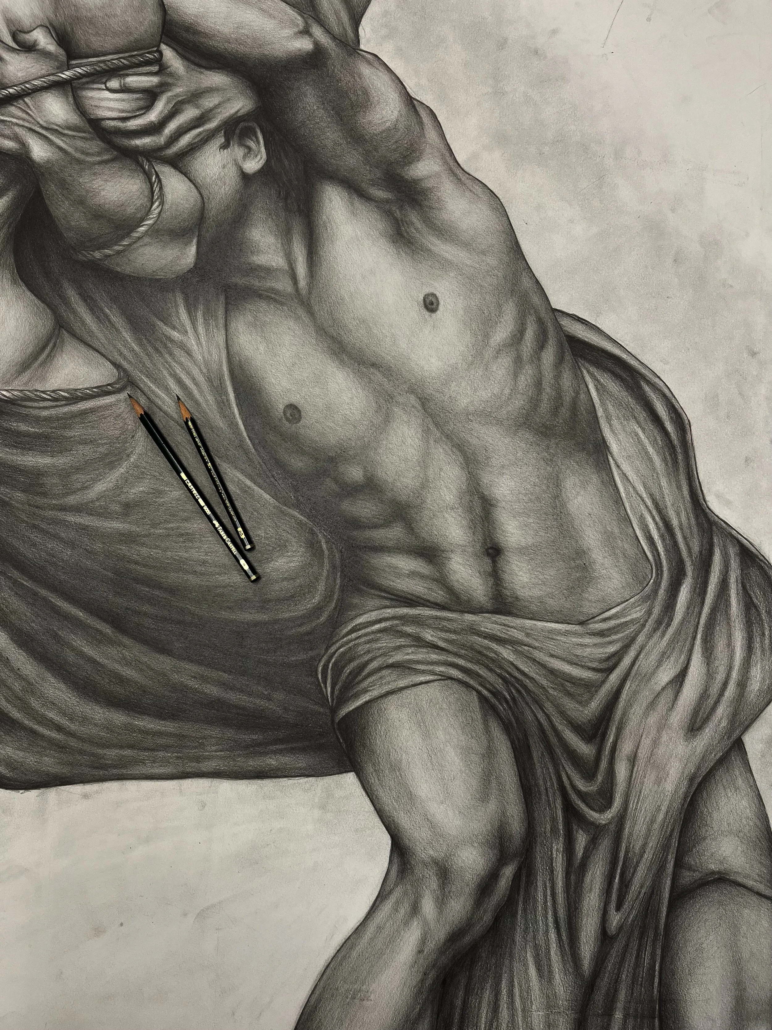 "Solomon J. Solomon - Samson", Graphite Pencil, 45 x 52 in