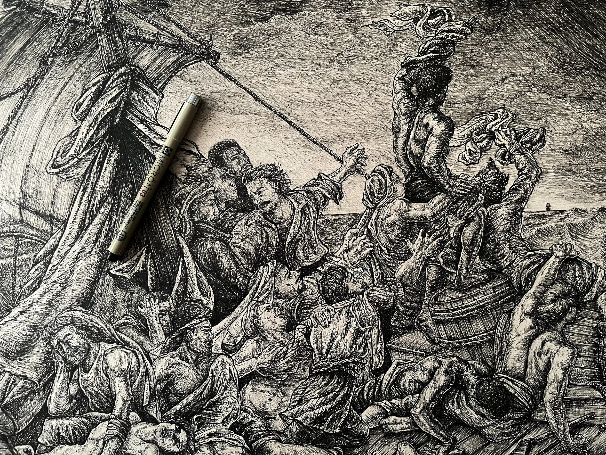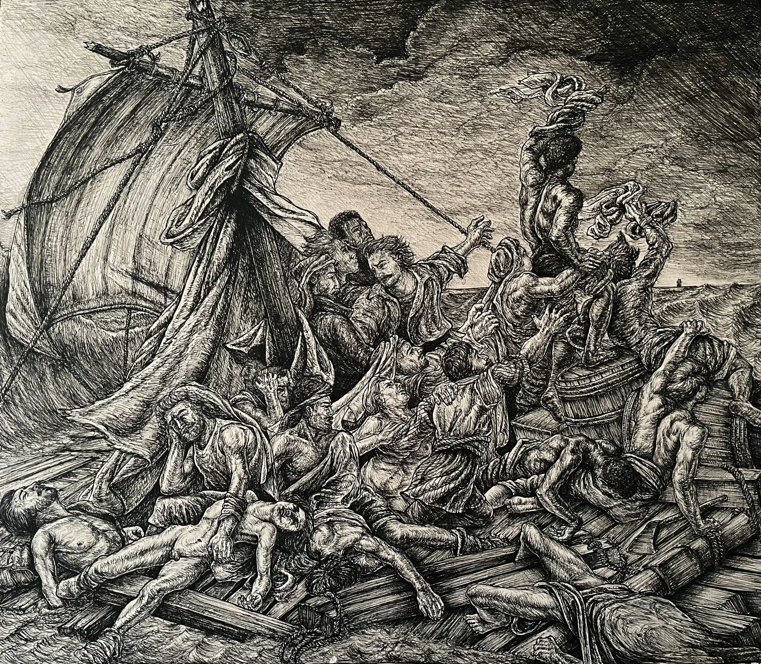 "Theodore Gericault - Raft of the Medusa", Pen and Ink, 19 x 22 in