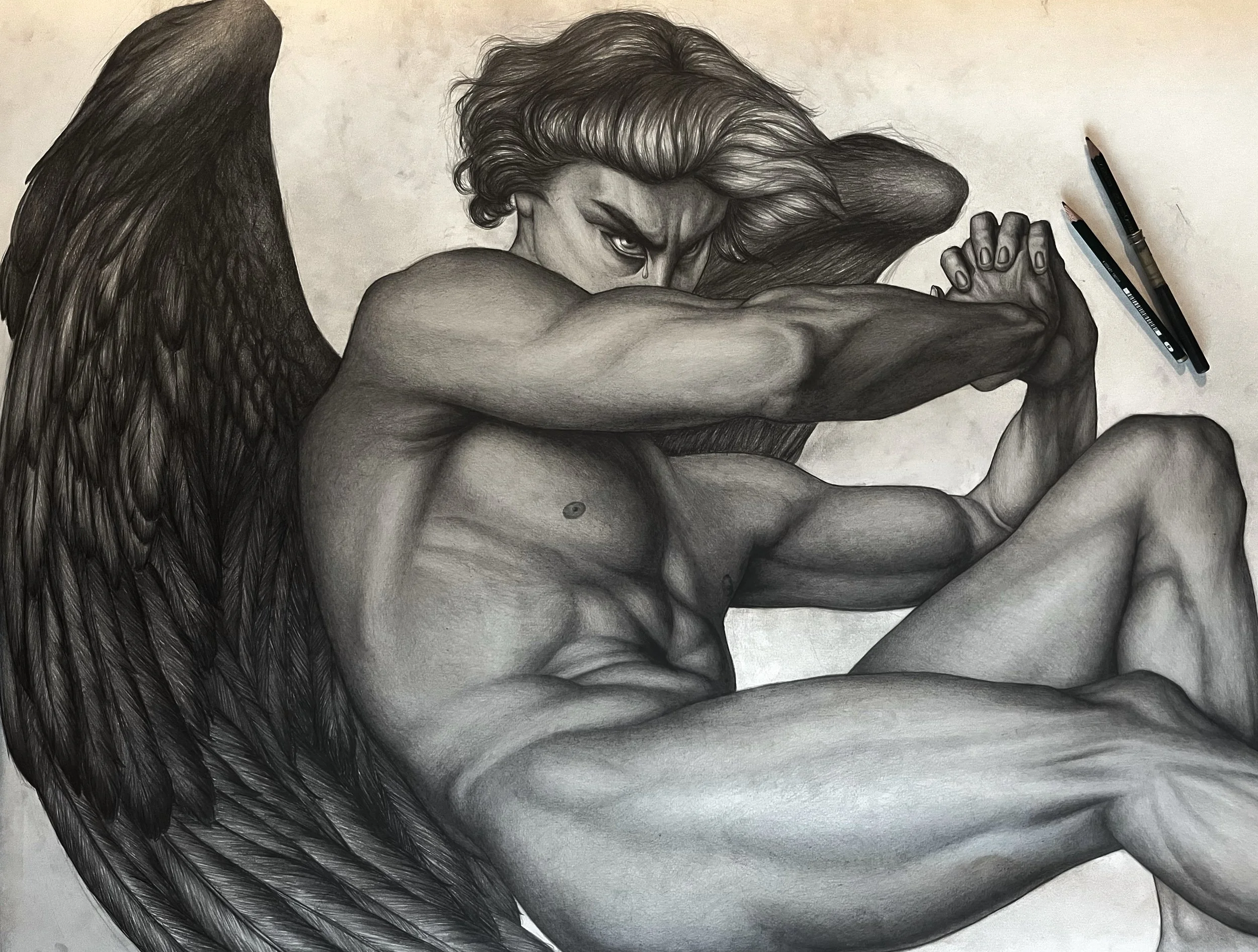 "Alexandre Cabanel - Fallen Angel", Graphite Pencil, 30 x 47 in